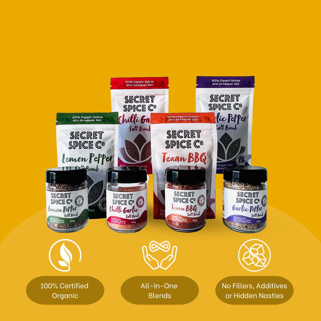 Yes - absolutely. Every Secret Spice Co. blend is made only with 100% certified organic herbs and spices. We never use fillers, additives, refined sugar, vegetable oils, or anti-caking agents - just pure, honest flavour you can trust in every jar.